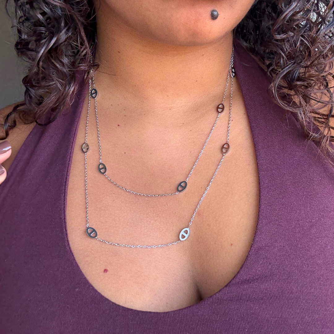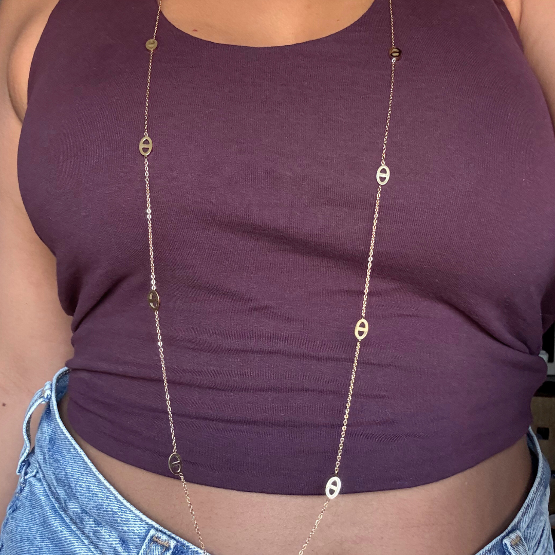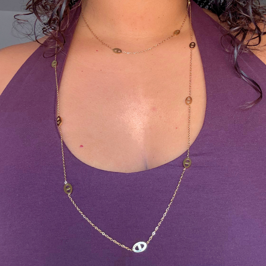CEDELLA revisite le bijou classique avec une touche contemporaine. Son design long et fluide, ponctué de maillons ovales délicats, se porte aussi bien en sautoir qu’en double tour pour un look affirmé. Léger, intemporel et élégant, il sublime aussi bien les tenues décontractées que les silhouettes plus habillées.
